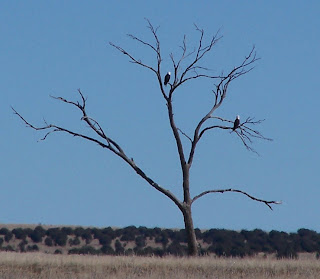 These two photos are of the same bird, but they were the best shots I could get of the Aplomado falcon, found on the Farm Loop of the Bosque del Apache NWR. This bird has not been seen in this area for many years. It is now being re-introduced by being raised on the Armendaris Ranch, owned by Ted Turner and managed by Tom Waddell. These birds may have been "raised" on the ranch south of the Refuge, but two of these falcons were recently seen on the Refuge which would mean they had been released into the wild. The two falcons found on the Refuge were noted as one adult female and one juvenile (possibly male). And I'm thinking this may be a juvenile male, but I'm not positive.